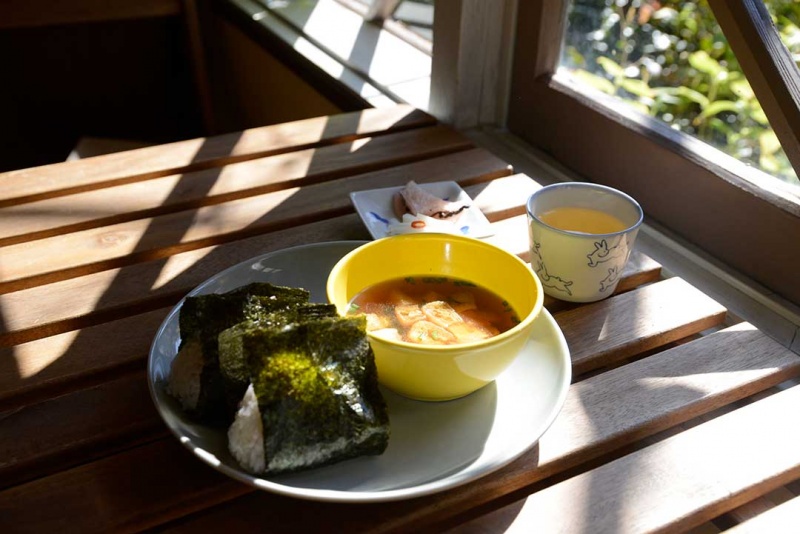 利用制陶厂所在地的建筑的咖啡店、咖啡豆店、电器商店等零星散布。正好肚子饿了,吃份“饭团”套餐吧。