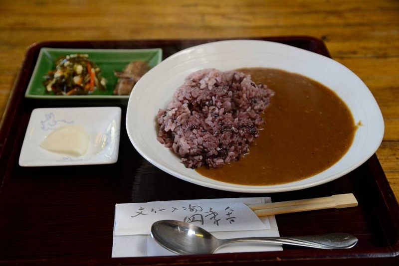 虽然刚吃了饭团,但在香料的香气诱人,我点了特产黑米咖喱(600日元)。比想象的还要香!而且,这个刺激又丝滑的可口咖喱与有弹性又软糯的黑米完美地融合在一起。