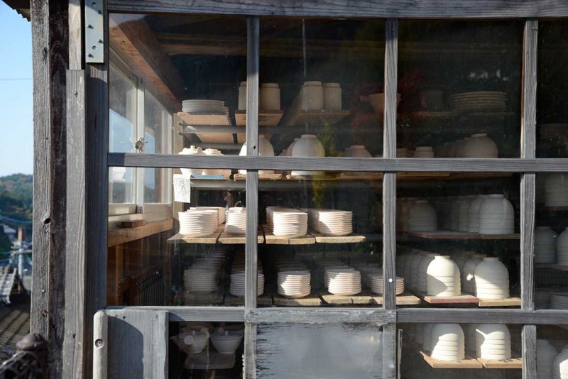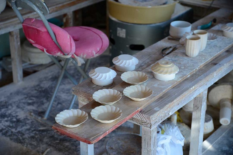 这里是刚成形的器皿。在这样的风景下工作的工匠的样子和氛围,或许也是中尾山的魅力。