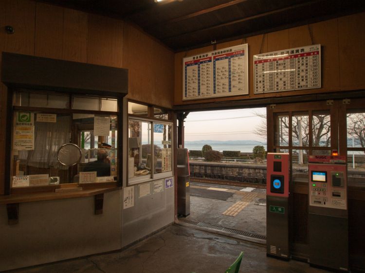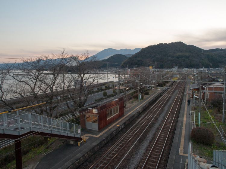 东别府站距离别府仅一站距离,站房建造于1911年,木质结构,给人一种非常温馨的感觉。在站台的跨线桥上,可以看到别府湾。