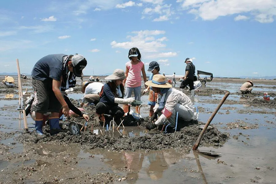 在有明海的东侧,有一片长约为9.1千米的荒尾滩涂。由于潮流的原因,造成泥沙和贝壳常年堆积。和其他海滩滩涂相比,这里泥很少,栖息着贝类、小型甲壳类,也是以鹬类、鸻类、黑鹭为主的许多候鸟的越冬地。